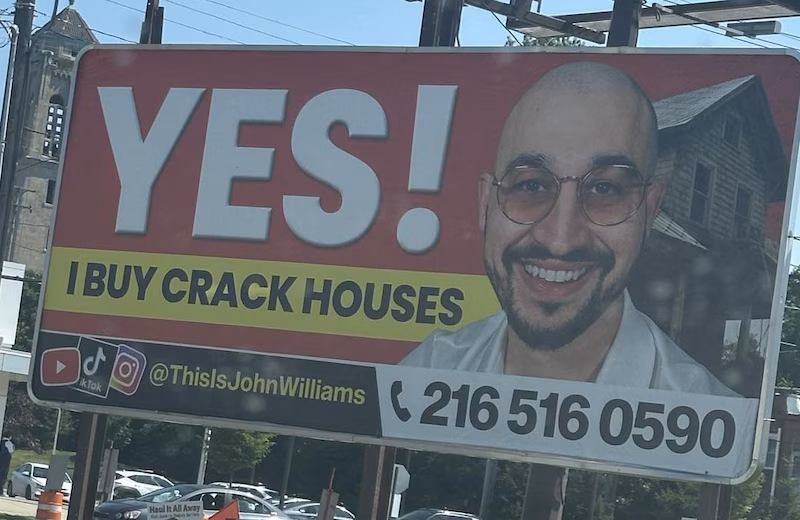Billboards stating ‘I buy crack houses’, ‘Your house is trash? I’ll pay cash’ and other slogans have been appearing around Cleveland, Ohio over the past few months. Real estate investor John Williams claimed he was buying undesirable homes in the area to clean up impoverished neighborhoods.